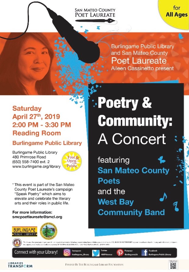 Presented by the San Mateo County Libraries and San Mateo County Poet Laureate Aileen Cassinetto