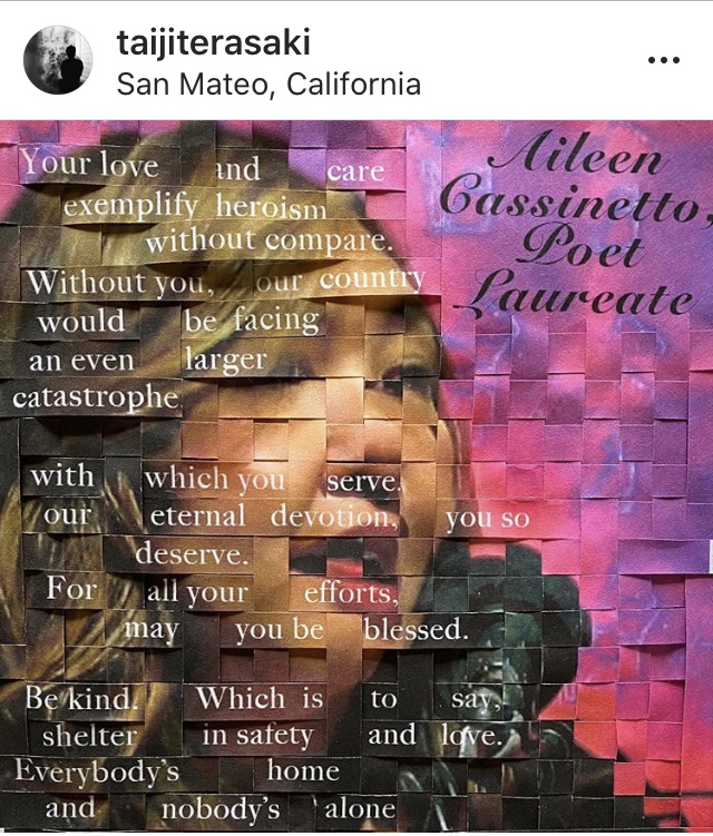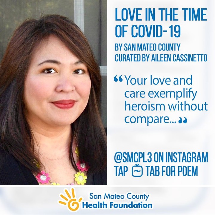 “Love in the Time of Covid-19” was officially presented at the San Mateo County Board of Supervisors Meeting on April 21, 2020. Aside from raising funds for the San Mateo County Health Foundation, this poem was used as a resource by the Alzheimer’s Poetry Project in Minnesota and the Montgomery Independent School District in Texas. It was also featured in Mystic Seaport Museum’s Memorial Day observance in Connecticut, the New Orleans Poetry Festival in Louisiana, Taiji Terasaki’s Transcendients Exhibitions at the Japanese American National Museum in Los Angeles and the Maui Arts and Cultural Center in Hawaii, and the San Mateo County Community & Covid: 4th Town Hall on April 29, 2021.