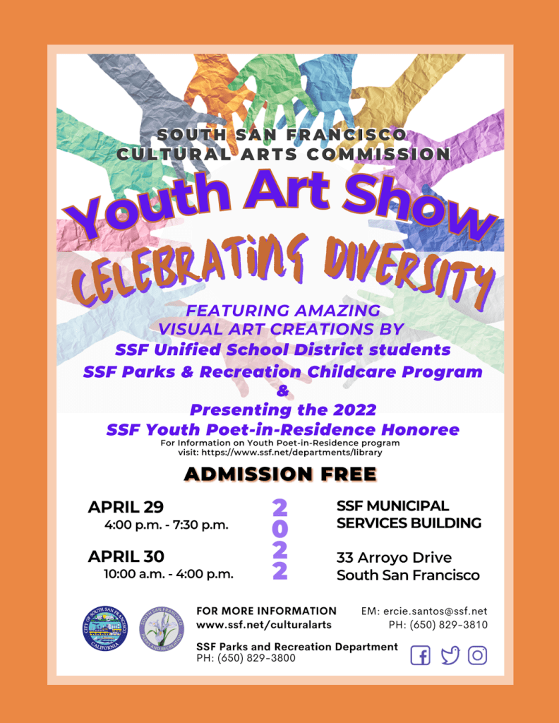 The South San Francisco Cultural Commission, SSF Parks & Rec and the South San Francisco Public Library will also be announcing the Inaugural South San Francisco Youth Poet-in-Residence competition winner!