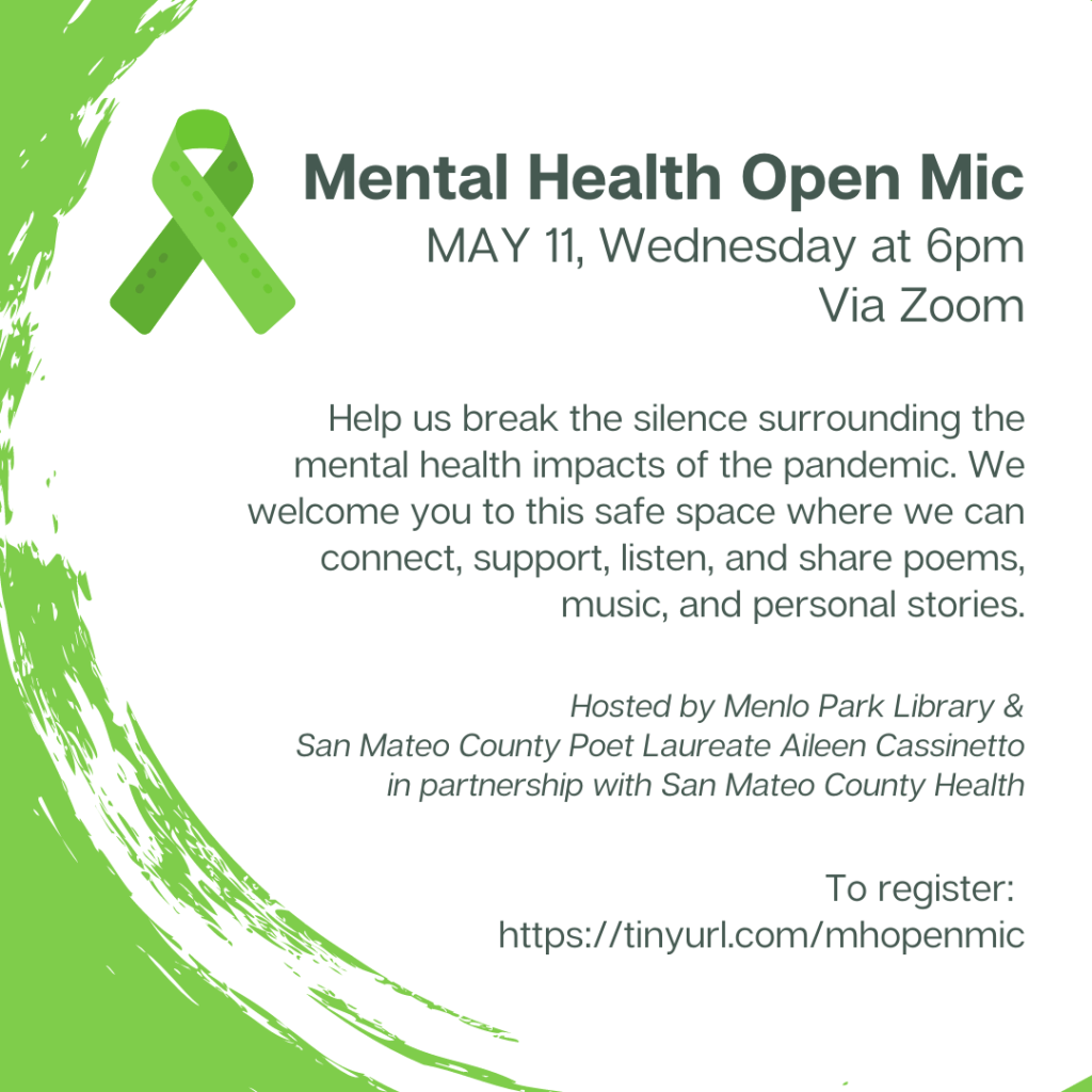 This May, the Menlo Park Library is partnering with San Mateo County Health and other organizations throughout the area in celebrating Mental Health Awareness Month (MHAM).