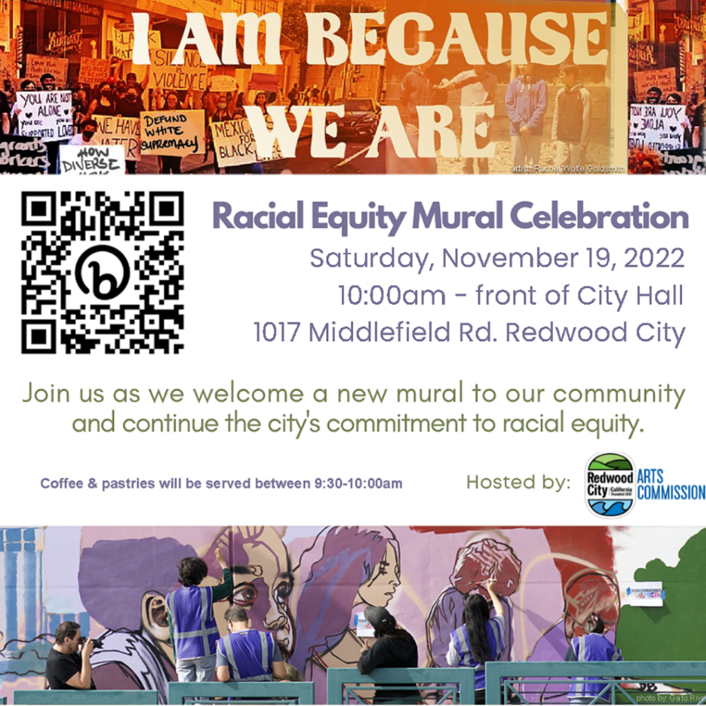 Join Racial Equity Mural artist Rachel Wolfe-Goldsmith, County Poet Laureate Emerita Aileen Cassinetto, Mayor Giselle Hale and many others as we celebrate the completion of Redwood City’s Racial Equity Mural on Jefferson Avenue during United Against Hate Week.