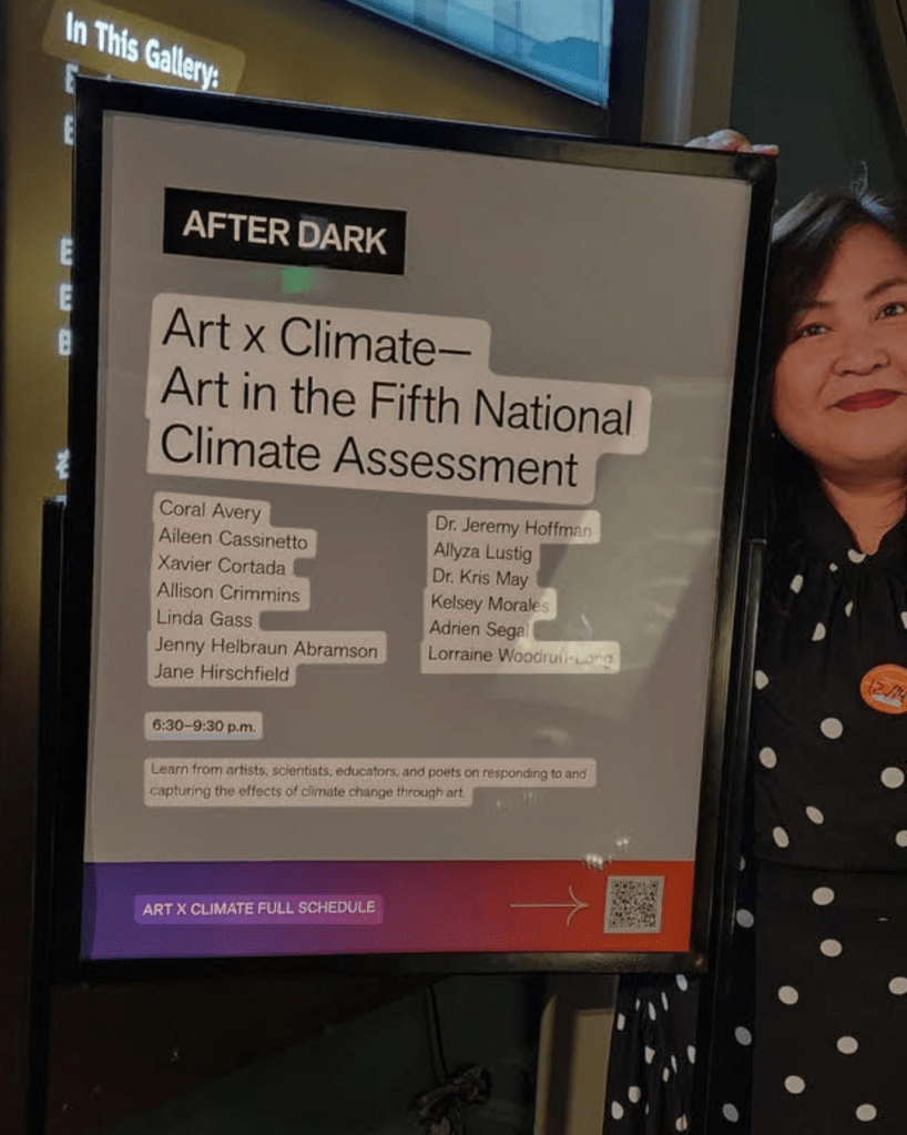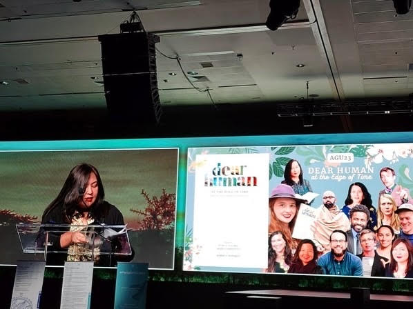 DEAR HUMAN AT THE EDGE OF TIME: POEMS ON CLIMATE CHANGE IN THE UNITED STATES (Paloma Press, 2023) is a companion to the Fifth National Climate Assessment (NCA5), and was created out of the need to tell our human stories alongside the science of the NCA5. Edited by 2021 Academy of American Poets Laureate Fellows Luisa A. Igloria and Aileen Cassinetto & NCA5 Chapter Lead Dr. Jeremy S. Hoffman, it features the work of 70+ poets and scientists. The anthology was presented at the AGU23: American Geophysical Union’s Annual Meeting at Moscone Center attended by over 26,000 scientists from 100+ countries, as well as the Exploratorium co-sponsored by the U.S. Global Change Research Program (USGCRP). An Earth Day video was released by the AGU in April 2024 exploring our “profound connection to the Earth and the responsibility we bear as stewards of its delicate ecosystems.” We have also partnered with Poets for Science and Wick Poetry Center in developing the Dear Human interactive microsite featuring poems from the anthology, Art x Climate artworks, and passages from NCA5 to invite the public to “share their voice in addressing climate change and exploring how the intersection of science and art can foster creativity, innovation, and discovery.” To date, we have collaborated with over 30 public and private organizations to help launch and promote this project.