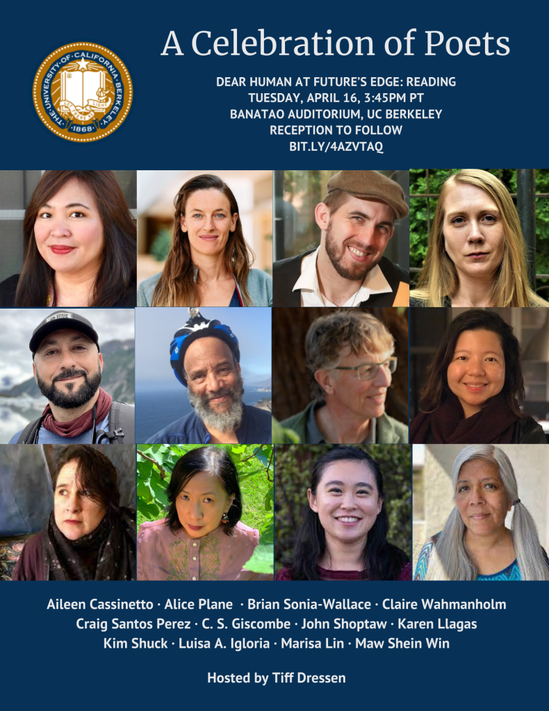 Join the virtual book launch and poetry reading on August 31st, Thursday, at 4pmPT/7pm ET, hosted by the South San Francisco Public Library and co-sponsored by the Institute for Coastal Adaptation & Resilience (ICAR) at Old Dominion University and The Academy of American Poets. This event is free and open to the public. Registration is required.