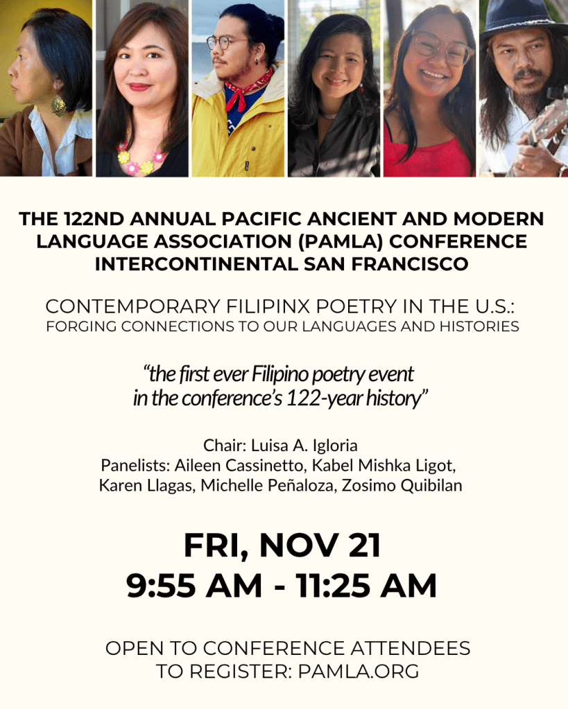 Join us for a reading, conversation and reception with poets Luisa A. Igloria, Aileen Cassinetto, Kabel Mishka Ligot, Karen Llagas, Michelle Peñaloza, and Zosimo Quibilan